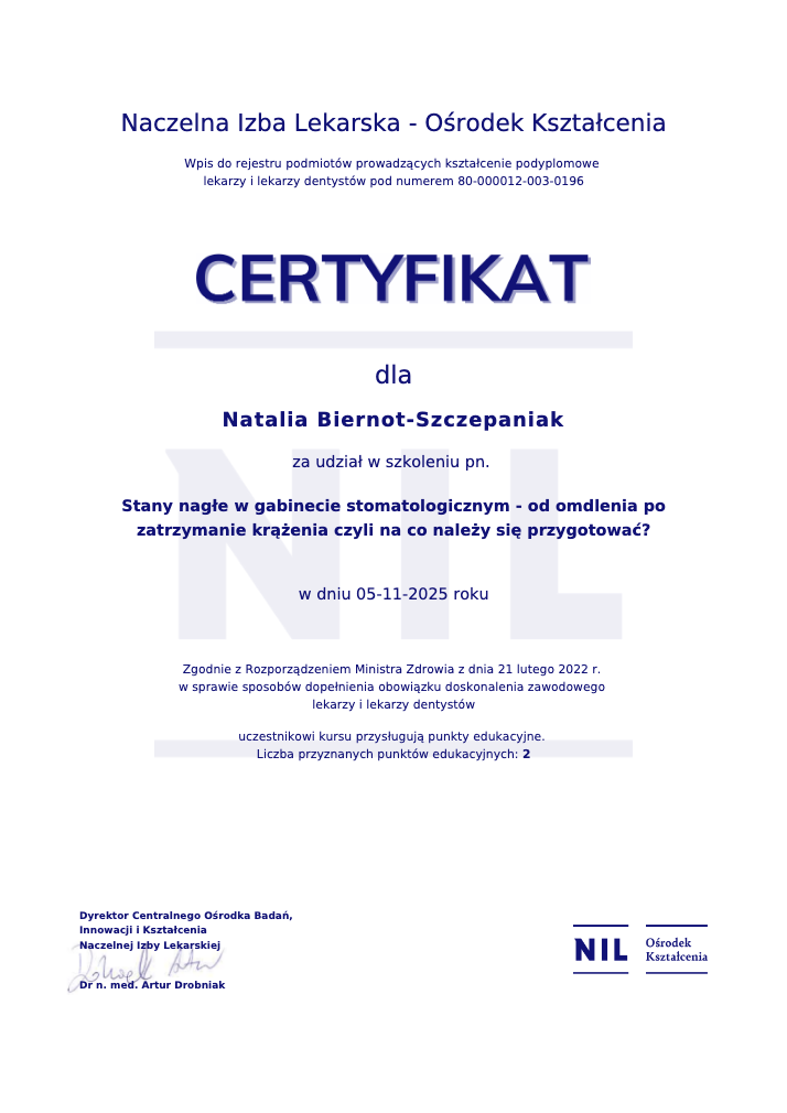 lek. dent. NATALIA BIERNOT-SZCZEPANIAK